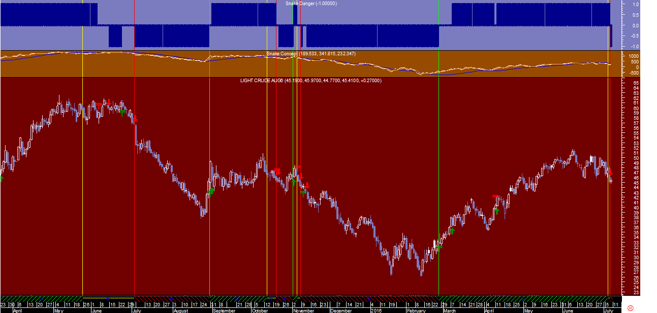 Na realidade o programa de trading alterou o seu sinal de compra, precisamente disparado no conjunto diário/semanal há cerca de 4 meses atrás nos 36,36 dólares por barril, desta vez a fechar para a posição por volta dos níveis atuais que se encontram a cotar na zona dos 45,40 o que corresponde na prática a uma trade com um ganho a rondar os 9 dólares/barril.