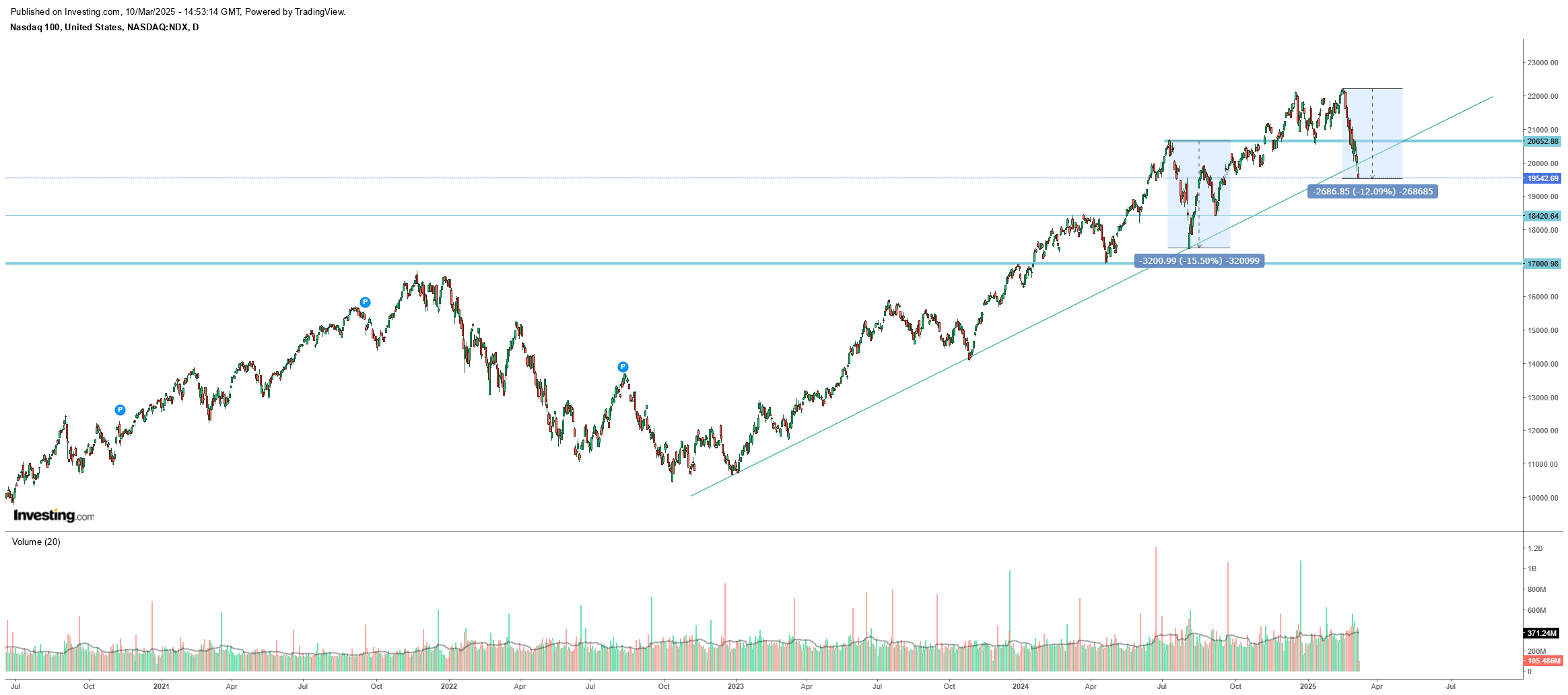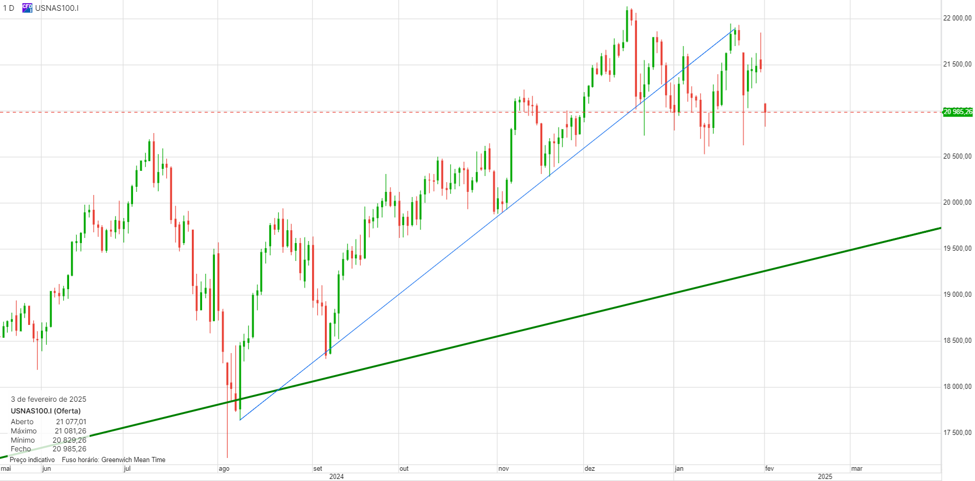 A zona dos 20500 é o grande suporte e se quebrada poderemos ter quedas mais significativas. Mas para já, ainda ronda os 21000