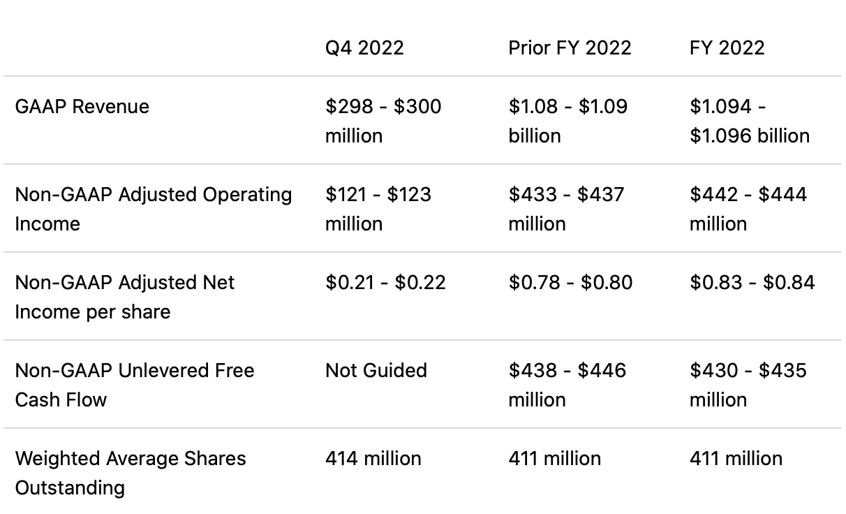 Foi reduzida de $438-446 M para $430-435 M o Unlevered Free Cash Flow