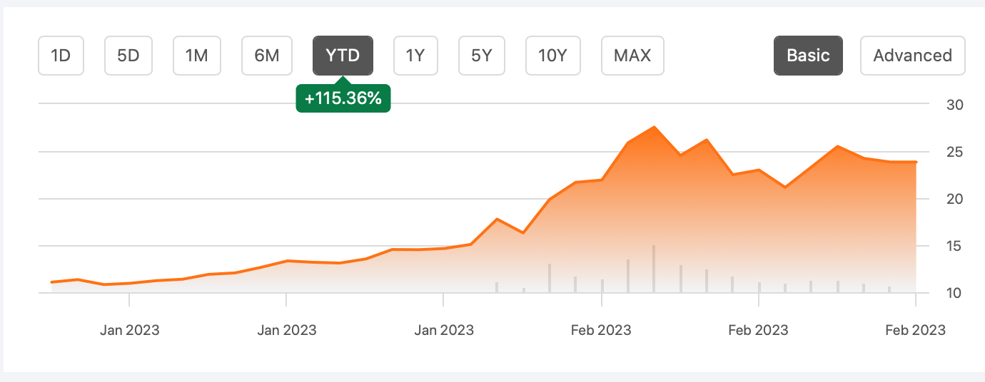 Desde então a empresa atingiu mínimos pouco acima dos $10 e fechou hoje a $23.84. Este ano já valorizou 115.34%.