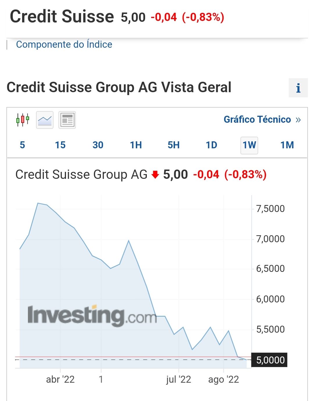 Com as ações do banco Credit Suisse a avaliarem a empresa em cerca de 13B, com um activo tangivel superior a 40B e com um histórico de lucros operacionais consistente, começo a pensar que o preço já compensa o risco de investir nesta empresa. Mesmo tendo em conta os headwinds da banca suiça, escandalos com Archegos, trocas de CEOs, etc...