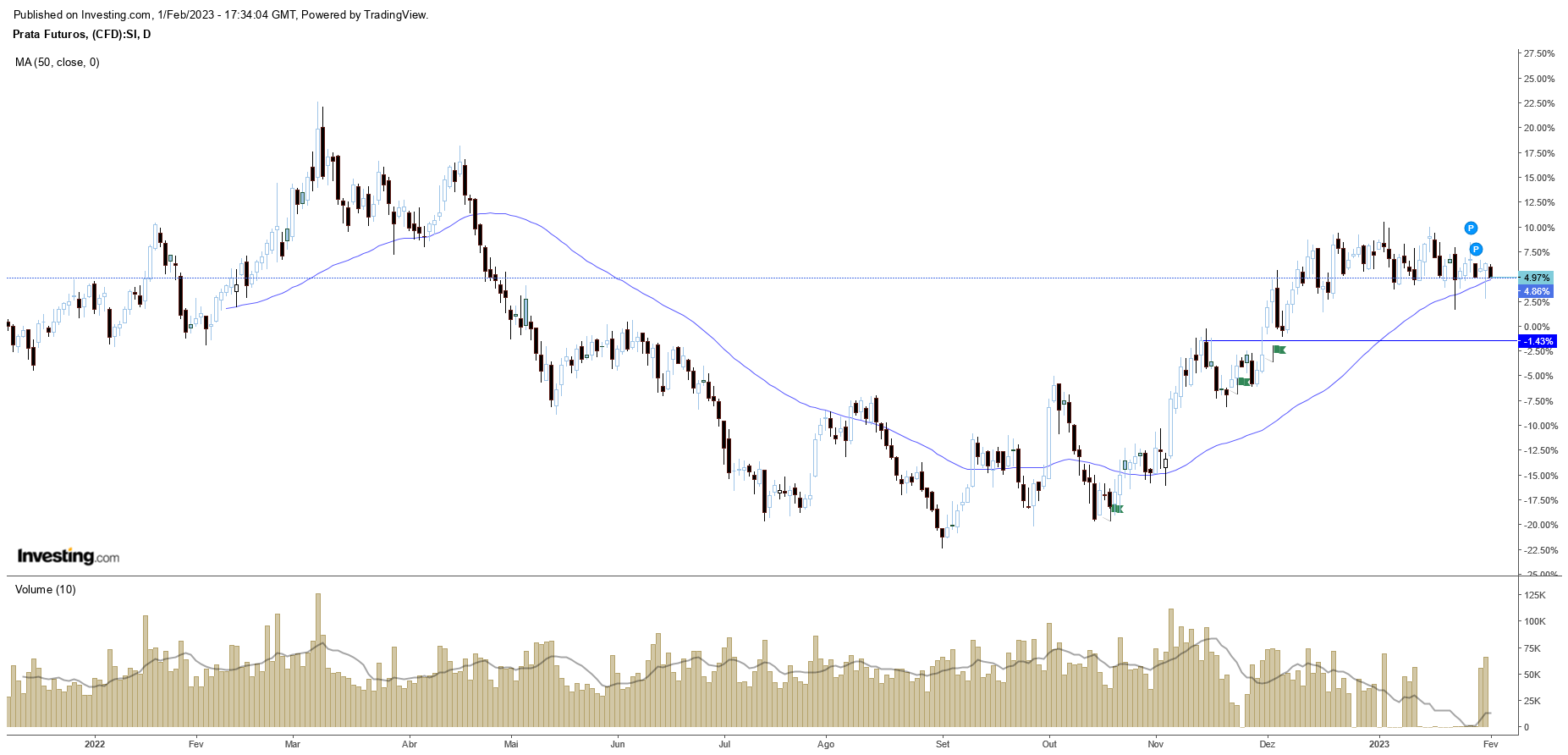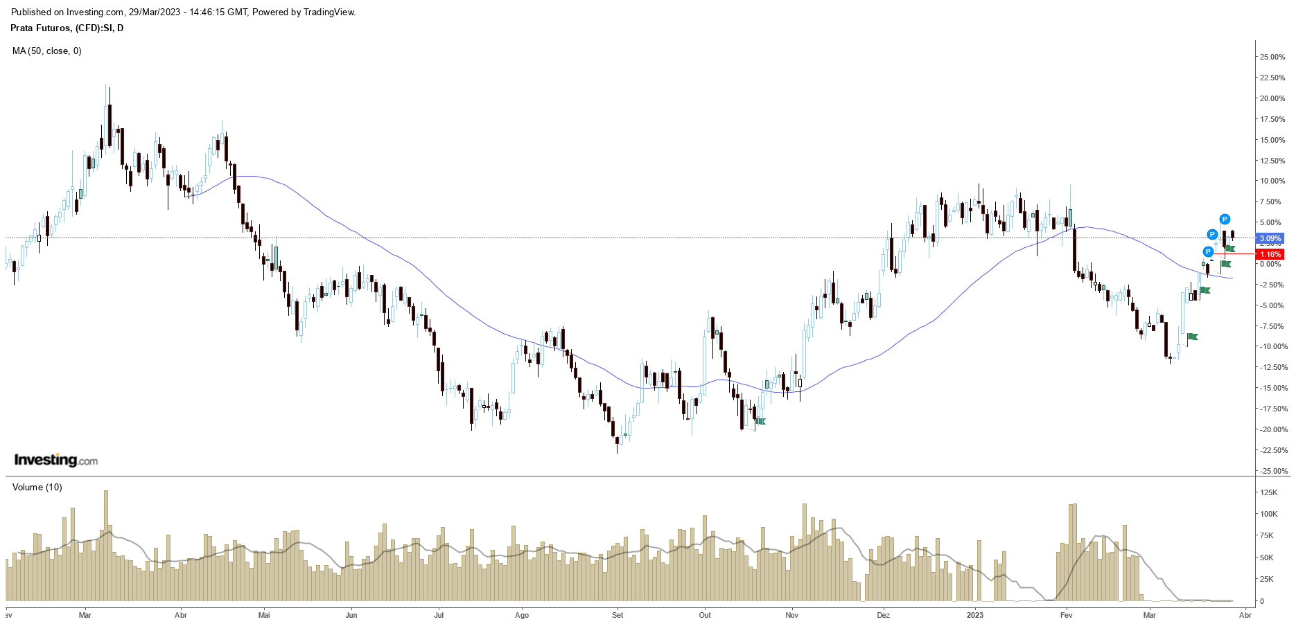 Mas atenção que a prata, faz movimentos maiores nas correcções.