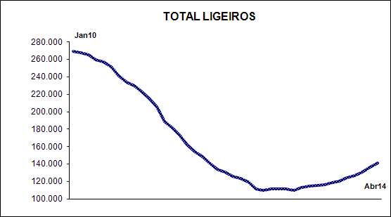 Deixo aqui um dado que me parece importante para perceber a tendência das vendas de automóveis ligeiros em Portugal desde 2010 até agora.