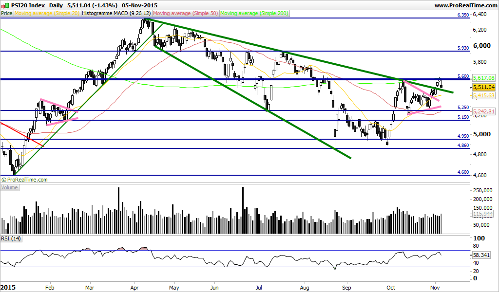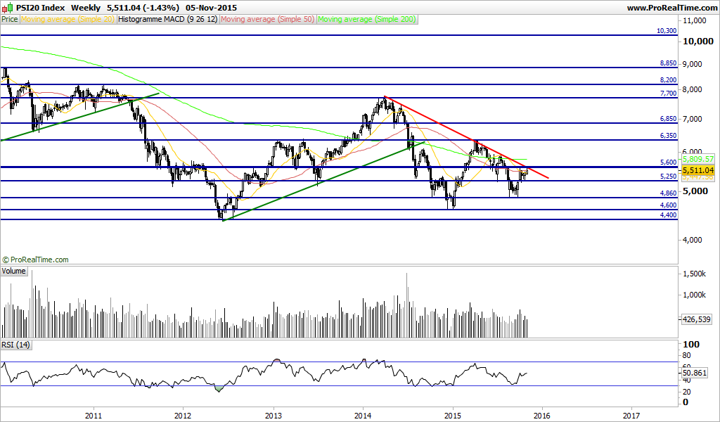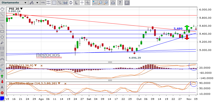 Resumindo o psi está á espera de qq coisa,embora esteja tudo gatilhado ainda na venda,o perigo passava apos os 5600pts e voltava a derreter abaixo dos 5425pts actuais conduzindo a novos minimos,o que tendo em conta a gapalhada que temos por aí abaixo seria uma patada "daquelas",ai sp sp se nao te portas bem...