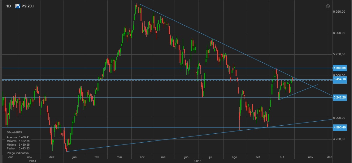 o psi também está no momento chave pois ameaça novamente um lower high. os 5200 deverão ser decisivos e a sua quebra deverá ser para levar o psi aos minimos do ano.