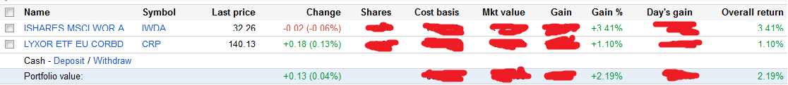 2,19% em menos de 2 meses com 50% obrigações empresas euro e 50% Ações globais parece-me um bom resultado, tendo em conta que secalhar tem menos risco que estar exposto a ações de 1 único país da América do Sul. Digo eu que não percebo nada disto.