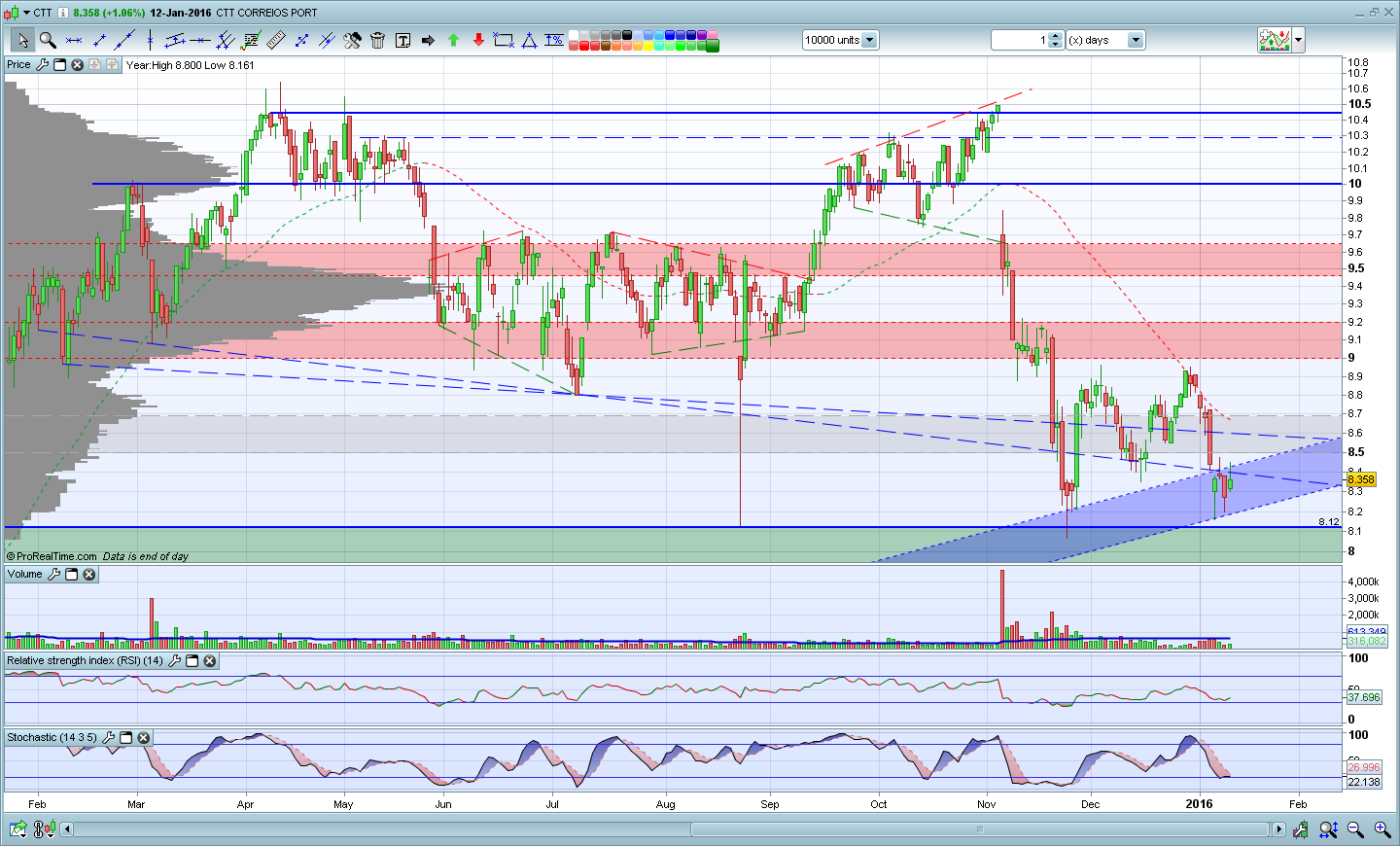 Muito provavelmente hoje vai fechar abaixo da LTA, espero estar enganado, esperar 2 ou 3 fechos abaixo para confirmar a quebra.