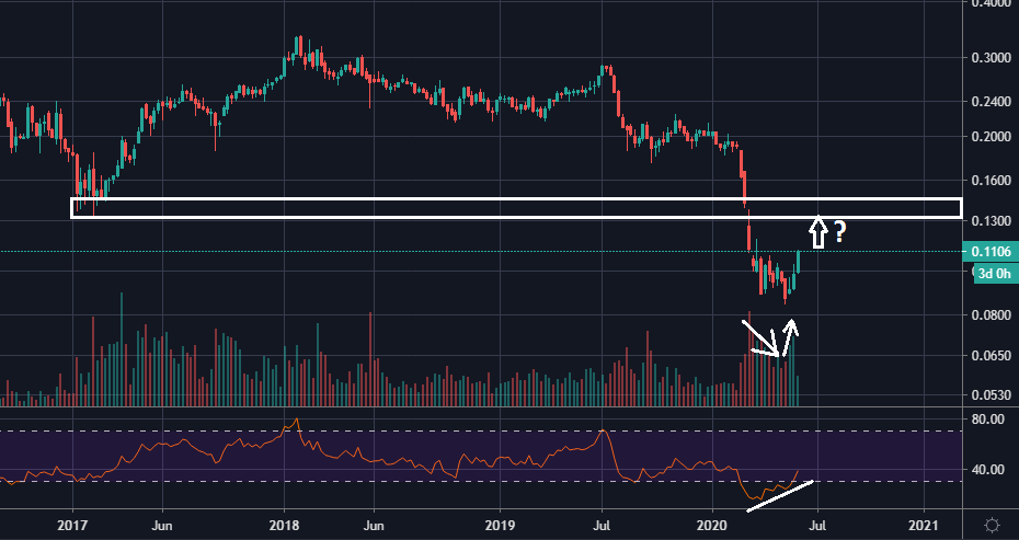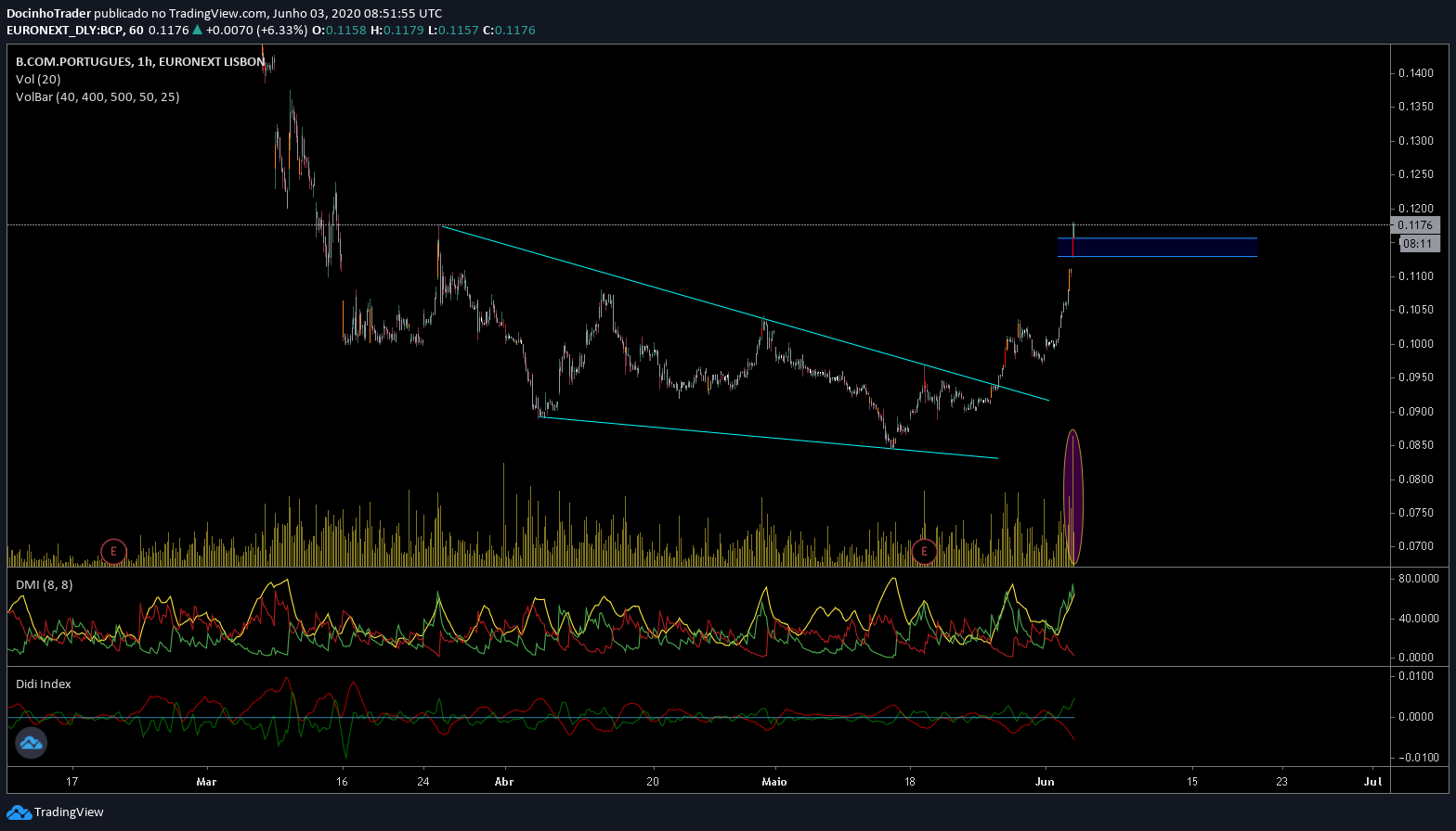 por isso deixei uma nota no meu grafico. Penso q a 1a resitencia estará perto dos 0.1325. Em relaçao a noticias, resultados e covids, acho q vai ser como em todas as outras acçoes, uma corda bamba. Resta surfar a tendencia e controlar os stops!