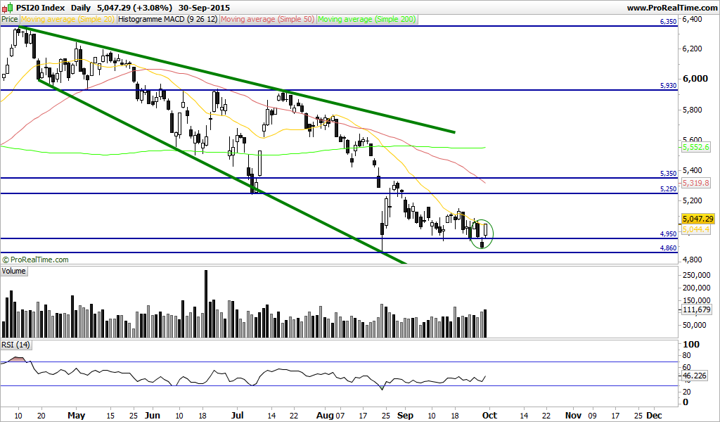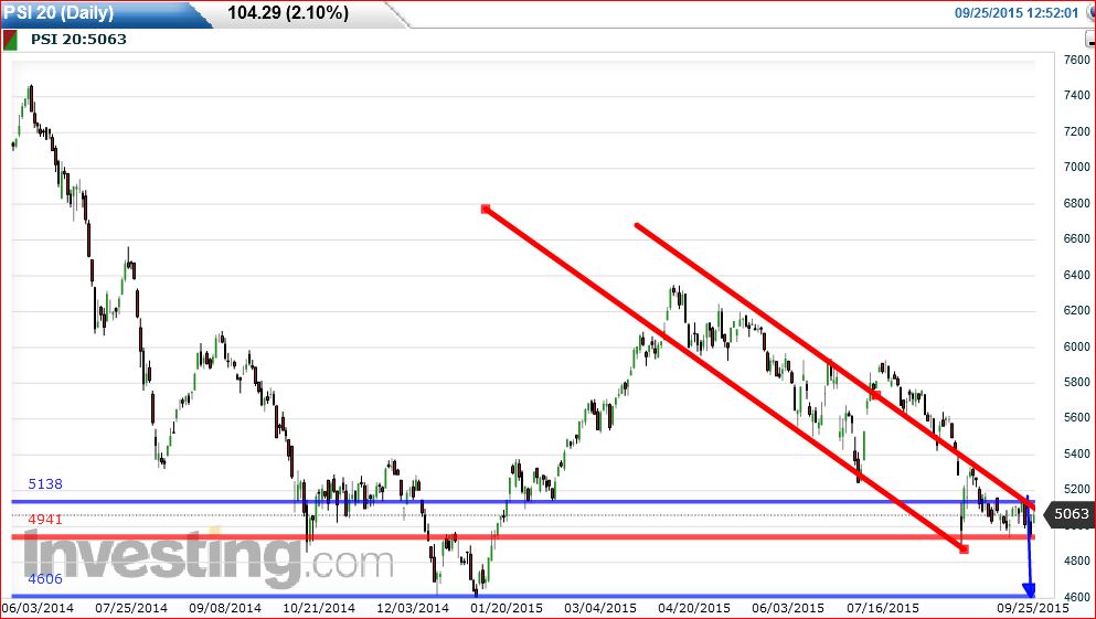 A duvida é se até meio de Outubro o suporte dos 5000 aguentará, mas isto depende em larga escala do que se passar no S&P, DAX e China.