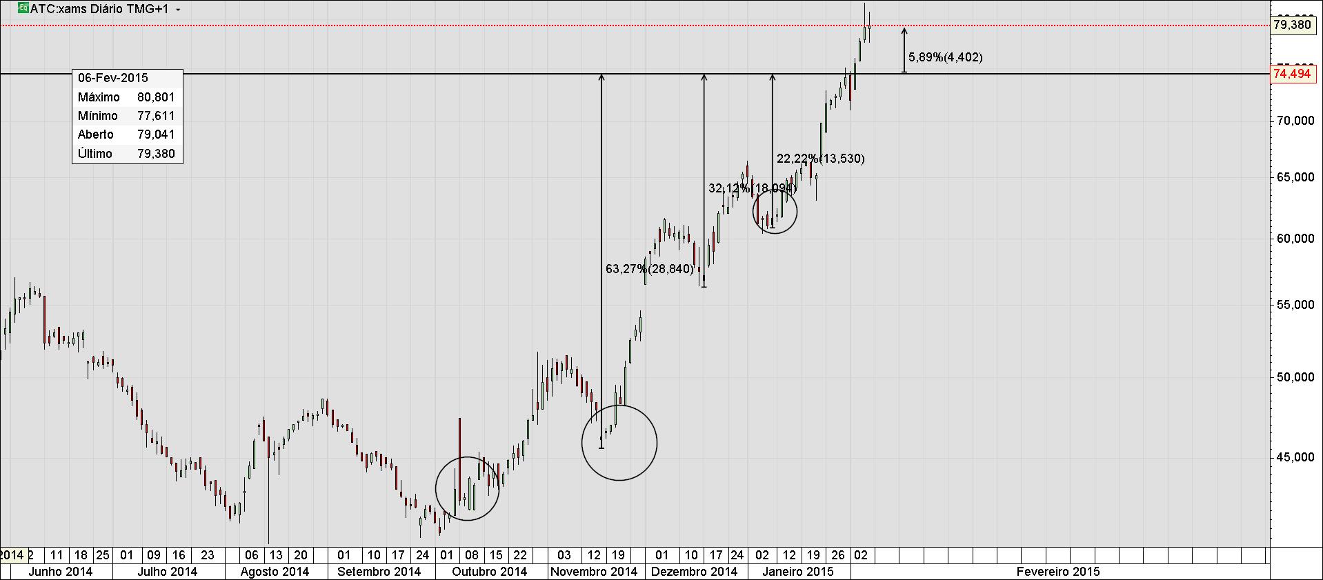 A PT fez um HL o que pode dar pujança para chegar perto do High anterior.