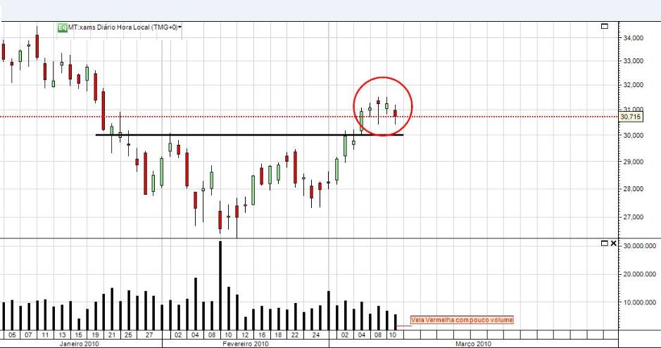 Os 30 são o suporte... Não gosto daquelas velas diárias... se bem que a vela de hoje foi feita com pouquinho volume