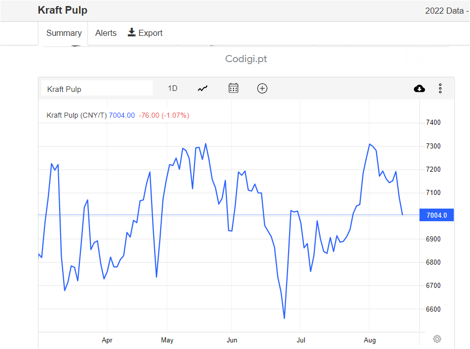 Dizer que estão alinhados não quer dizer que sejam iguais. Mas o preço da kraft pulp é que é determinante para a fixação dos outros. É uma matéria prima com variações diárias o que torna mais fácil o estudo da evolução dos preços de todas elas.