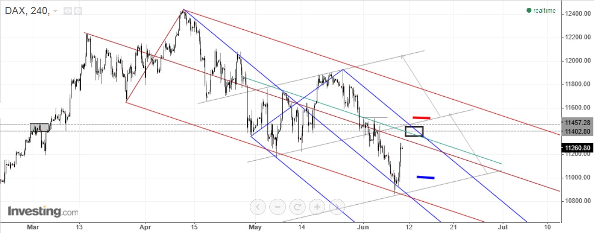 uma OE curta no DAX. o take profit na zona indicada tem em conta a linha de acção a cinzento bem como o suporte na zona dos 11000, e não tanto as linhas das forks (caso tivesse, o alvo seriam os 10850).