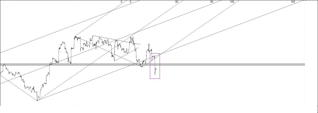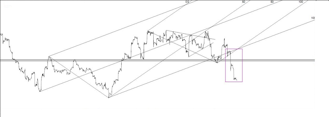 Entrei no sítio que assinalei com o pequeno círculo rosa. Embora viesse perseguindo lá de cima, como tive oportunidade de mostrar, o preço não me deu oportunidade de entrada tal como eu gosto de fazer, por isso esperei por uma nova oportunidade.
