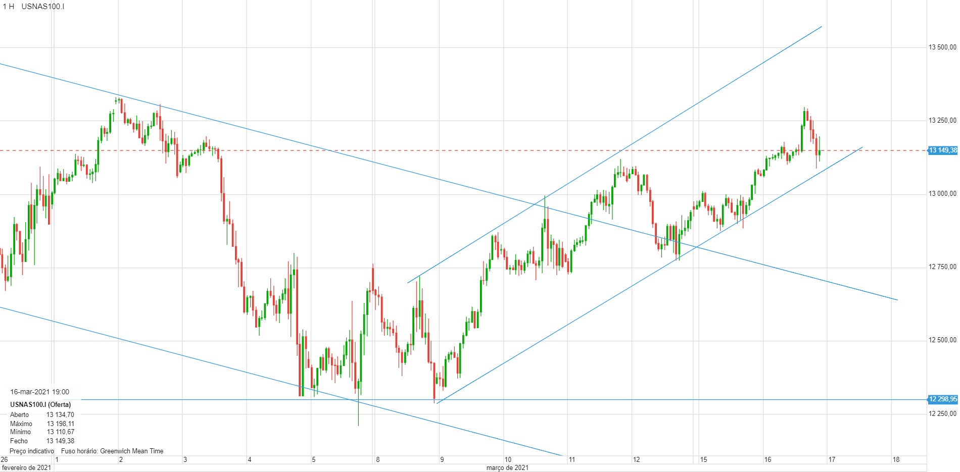 Kooc Escreveu:Bom, como não utilizo o gráfico de uma hora para negociar, tinha os meus stops a 12900 (para não perder neste trade, que o valor nem é muito bem escolhido), assisti quase resignado a um dia de perdas e pensei que fosse ser "stopado". mas no fim do dia, upa upa..e recuperou a LT ascendente. Não sei se será uma linha de grande validade, mas como tinha decidido não entrar no daytrade e ver o que dava, correu bem.