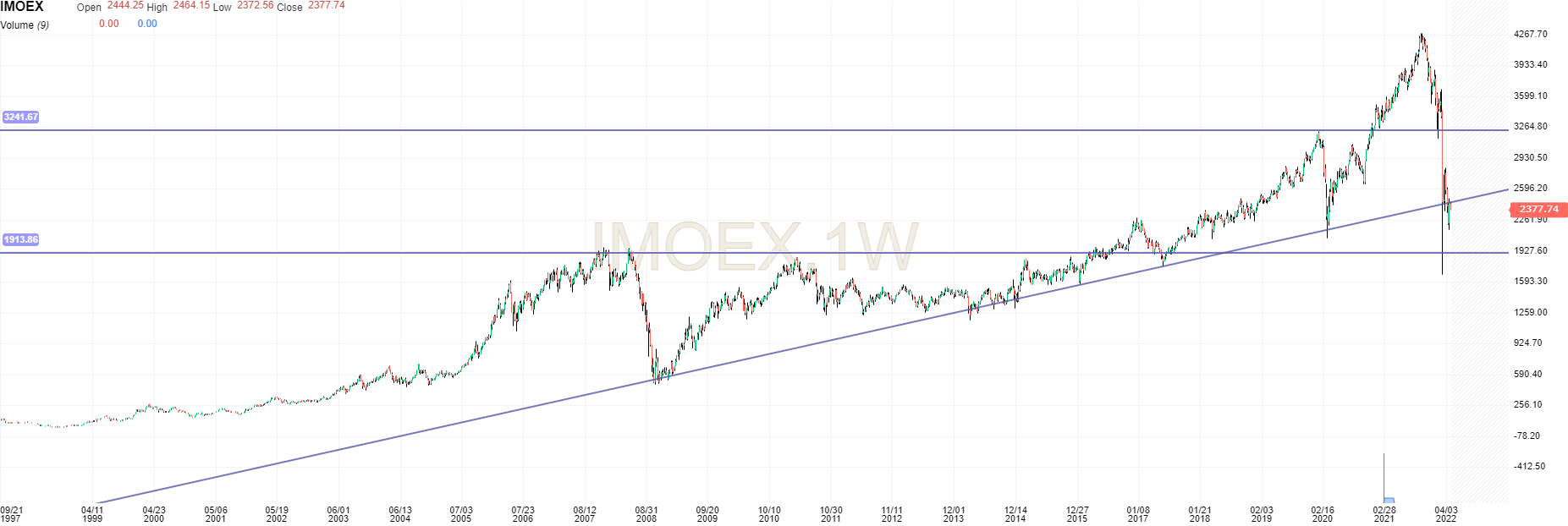 Índices russos, que apesar de tudo o moex vivia um longo bull mark, assassinado pelo politico putin e companhia.
