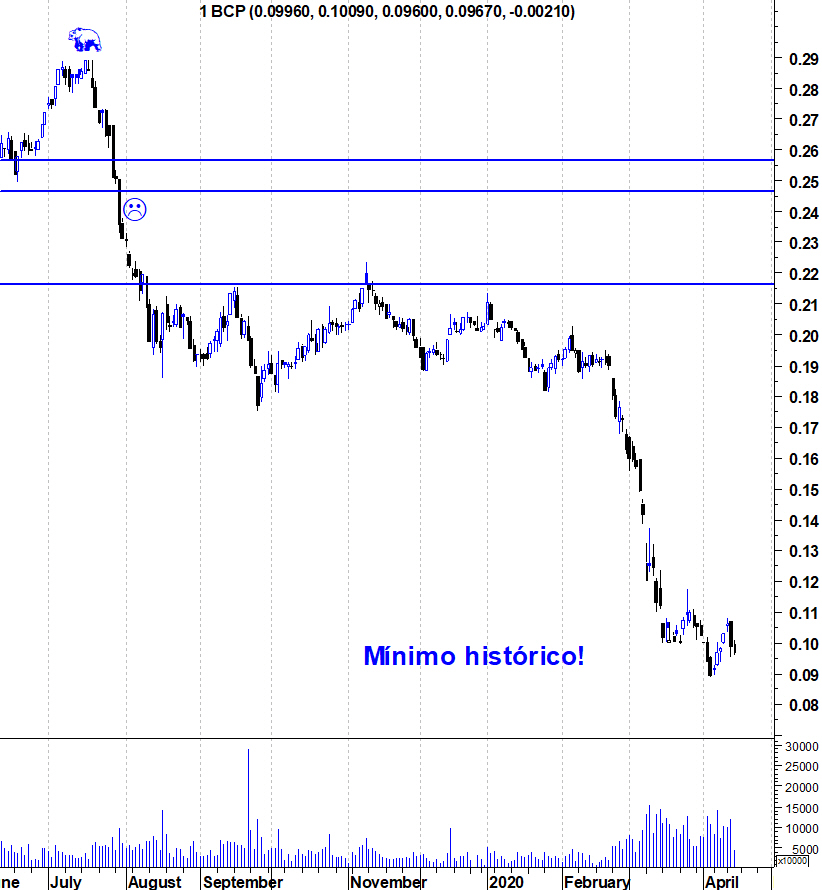 Não é só BCP que está em mínimos. A banca europeia está toda de rastos e suponho que o mesmo se deve aplicar a nível global!