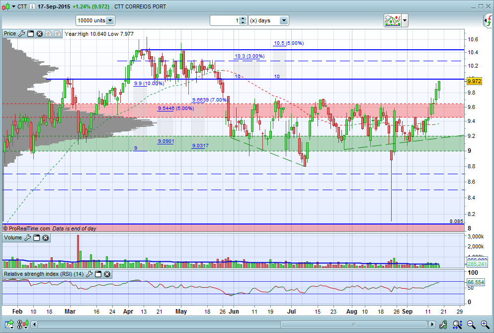 Agora falta saber se os 10€ se vão tornar uma resistência, nova ida à zona dos 9,70€ ou mais a baixo também é provável.Não percam os próximos episódios que eu também não