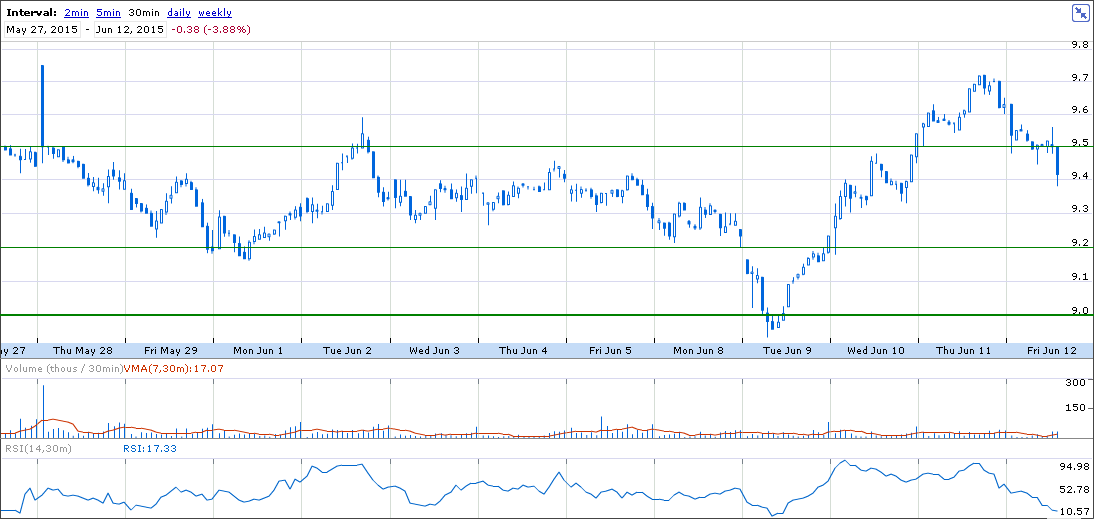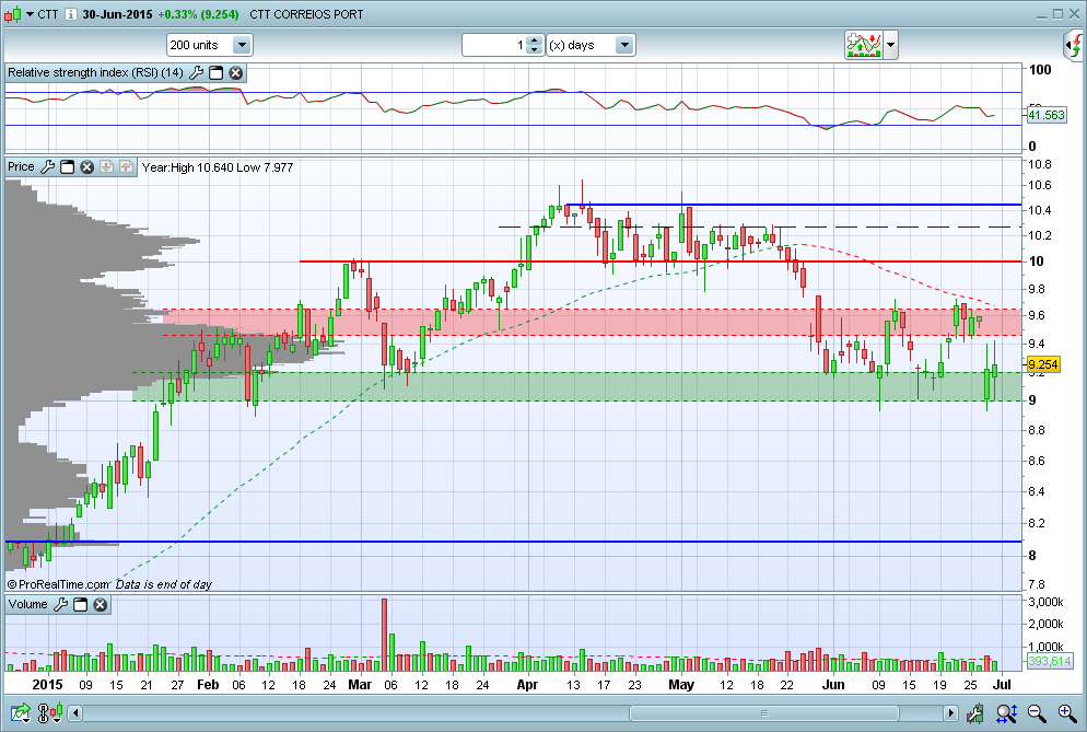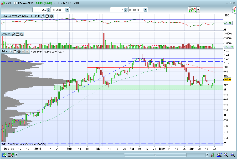 Apesar do mau aspeto entrei no final da sessão. O fundamento é só um, está em cima do suporte, se quebrar não cai nem o Carmo nem a Trindade, se o suporte cumprir a sua função, que é suportar, melhor. O Stop está abaixo da linha, não tenho target automático, mas estou a considerar a zona dos 9.45 paus.