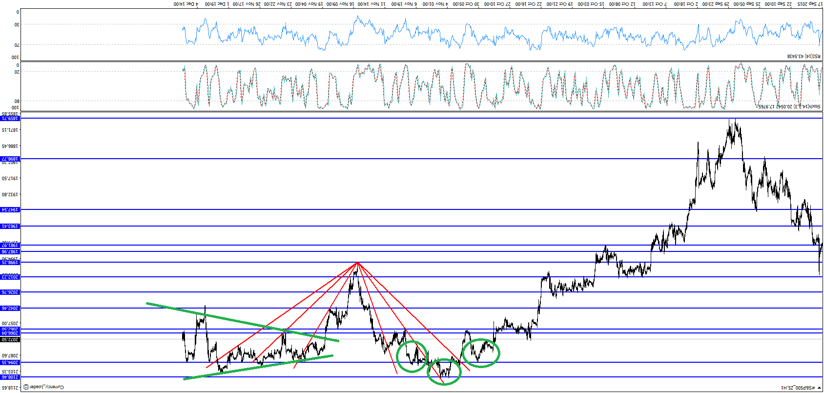 2.- A evolução do preço até aos ombros da forquilha é mimetizada depois de entrar nos dentes da mesma.