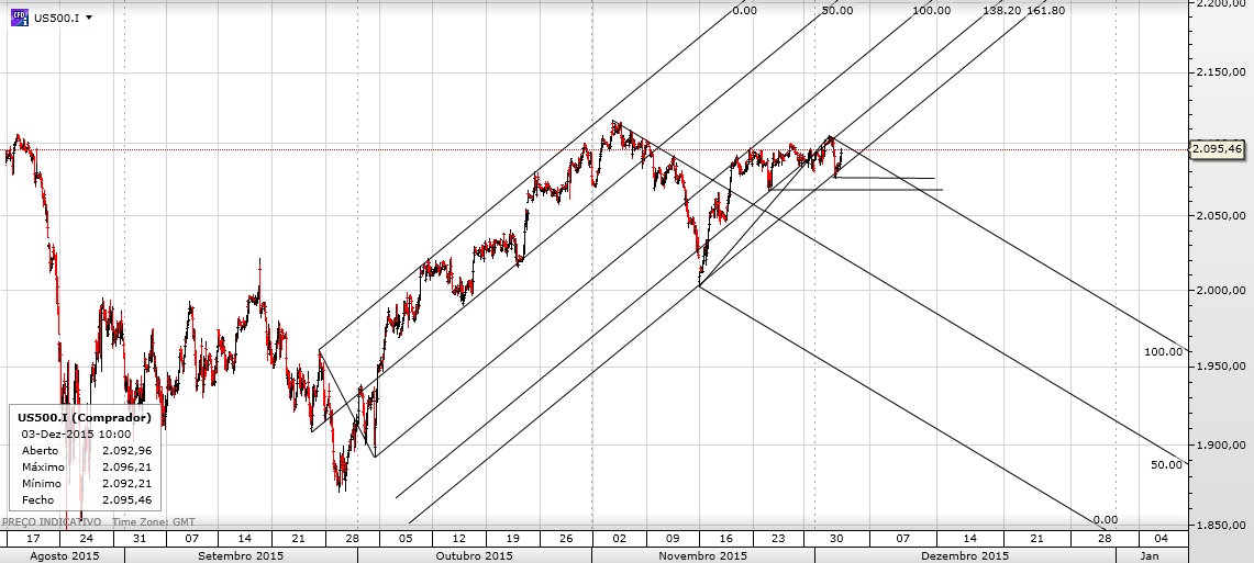 O SP 500 está numa zona de lateralização entre os 2035 - 2100.