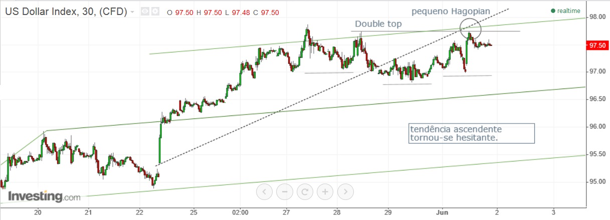 malvoisin Escreveu:2 gráficos: eur/usd e us dollar index antevendo a subida do dólar e a queda do euro no muito curto prazo.