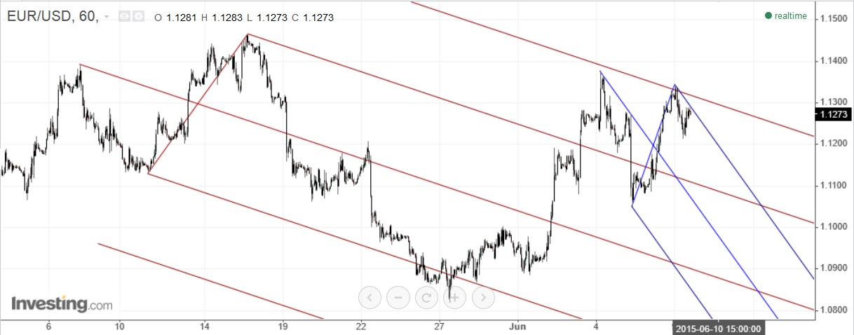 actualização do negócio curto no eur/usd, agora com fork azul já testada e redesenhada.
