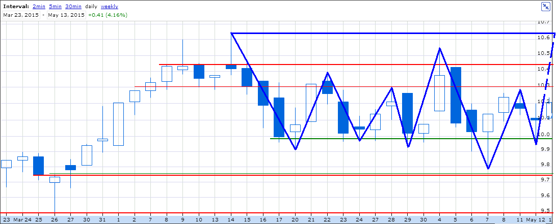 Ulisses, desde a vela do dia 9 de março ao cimo desse movimento e depois com a lateralização, não poderemos pensar numa bandeira? Se romper os 10,43 qual a projecção do movimento?