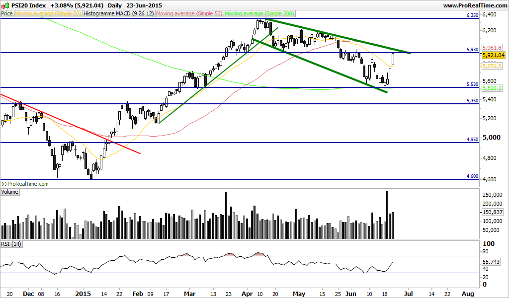 As subidas de ontem e hoje nada tem que ver com a Grécia. Aliás quem se preocupa neste mundo com a Grécia. O PSI subiu ontem e hoje porque tinha que subir e desceu porque tinha que descer. O que movimenta os índices é um sentimento difuso, um desvio comportamental da personalidade interior, um lapso difuso de uma sinapse egocêntrica..... Queremos lá saber se há acordo com a Grécia, queremos lá saber se a zona euro vai implodir, queremos lá saber do ponto de vista geo-estratégico se a Grécia se aproxima da Rússia ou outra qualquer coisa completamente marada - O que faltava era os mercados se preocuparem com "peanuts".