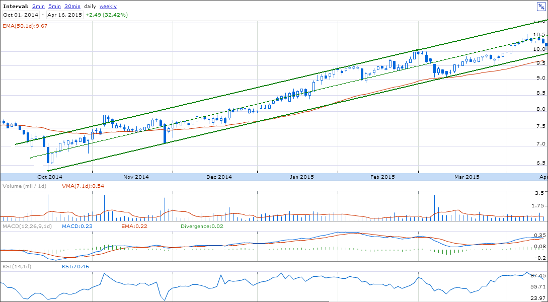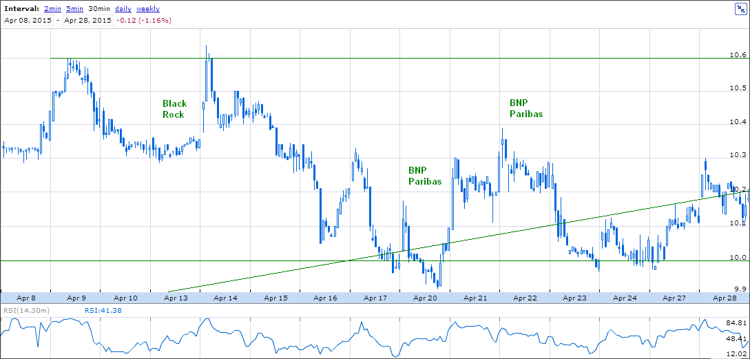 Do meu lado reforço de long que já tinha (por acaso ao mesmo valor de 10,00) pelo motivo de estar em cima do minimo do canal do diário e 4h. Entradas num momento em que a Grécia caminha para a bancarrota são sempre arriscadas mas se não se arrisca.... Stop curto por baixo da quebra do canal.
