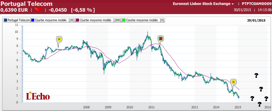 Enquanto estamos a ver a PTSGPS a derrubar o cenário num razão de 1.000.000 : 1, (quais seriam tais interesses em derrubar a PT num puro e típico movimento interno, que interesses são esses em destruir esse valor, eles devem estar a rir-se de uma multazinha de 5.000.000 além do que só os pagará se não for um jogo de cena para convencer e justificar o salário, que história mal contada, temos que agradecer ao bes/ges e aos bandoleiros de gravatas que em jogadas de barato, vai sair caro em perda de valor, e...e vai ficar assim mesmo, ou acabará em aguas de bacalhau ou acabará em pizza ) entretanto desde então, poderíamos ter escolhido entre três entradas claramente assinaladas no gráfico, se eles são os donos do dinheiro claramente os únicos benefiados, sim Senhores a Altice no gráfico.