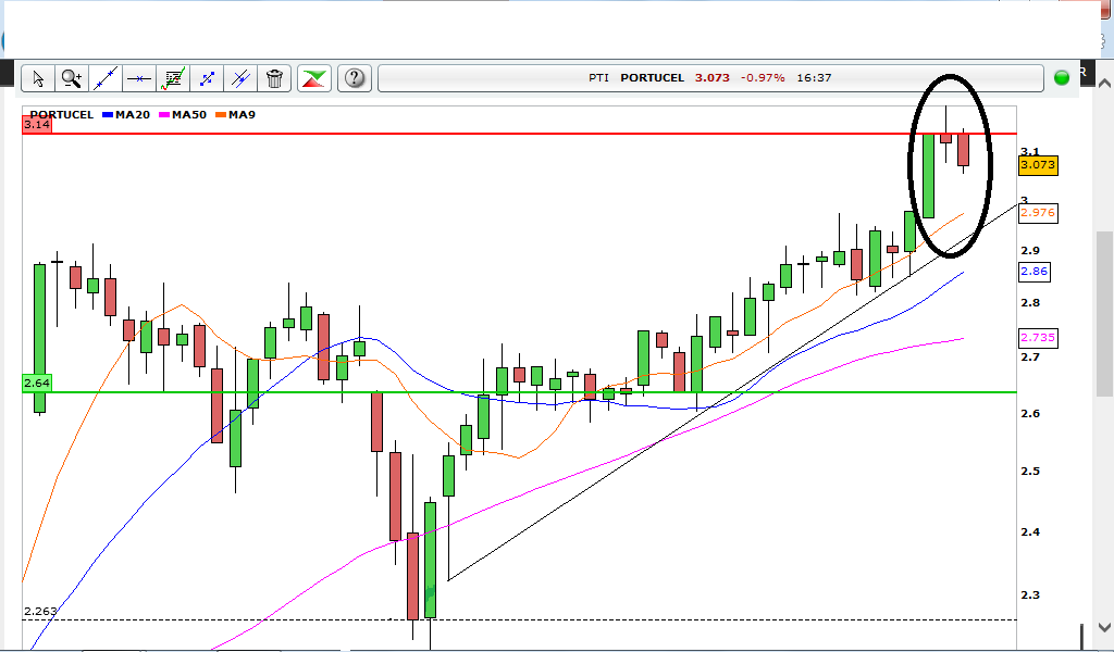 Mas entretanto já coloquei ordem de stop loss para amanha na minha posição de 2 semanas na Portucel... As notícias da Reserva Federal deverão fazer mossa e apesar das projeçõs dos EUA... (só a expectativa hoje já o fez)