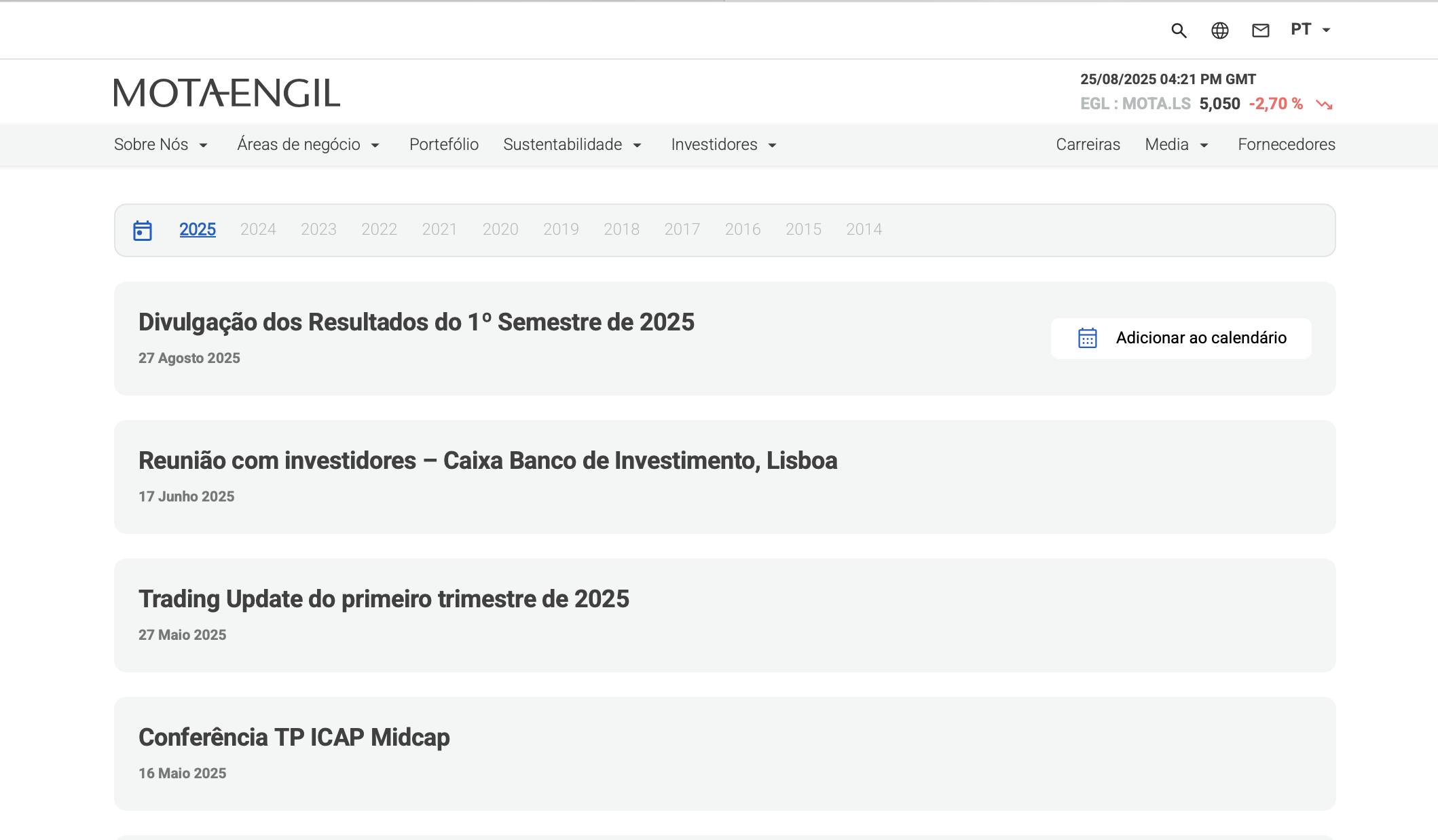 A apresentacao de resultados da Mota costuma ser depois do fecho