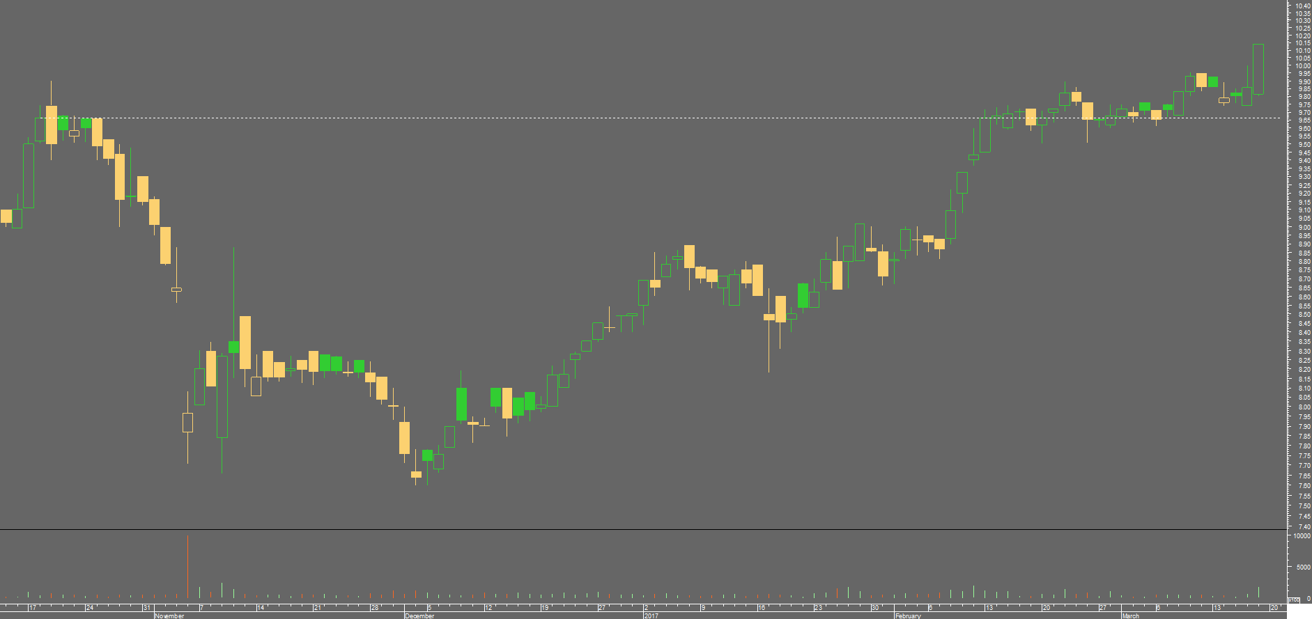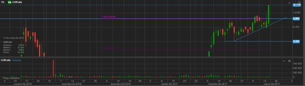 Bom, aguardaria por umas sessões acima desta zona dos 9,70-9,90 antes de a considerar já um suporte. Até isso acontecer, pode ser sempre um falso break out, mas não acredito que seja o caso. A vela de hoje é muito boa e o caminho da corticeira parece mesmo ser para norte.