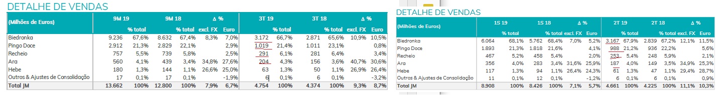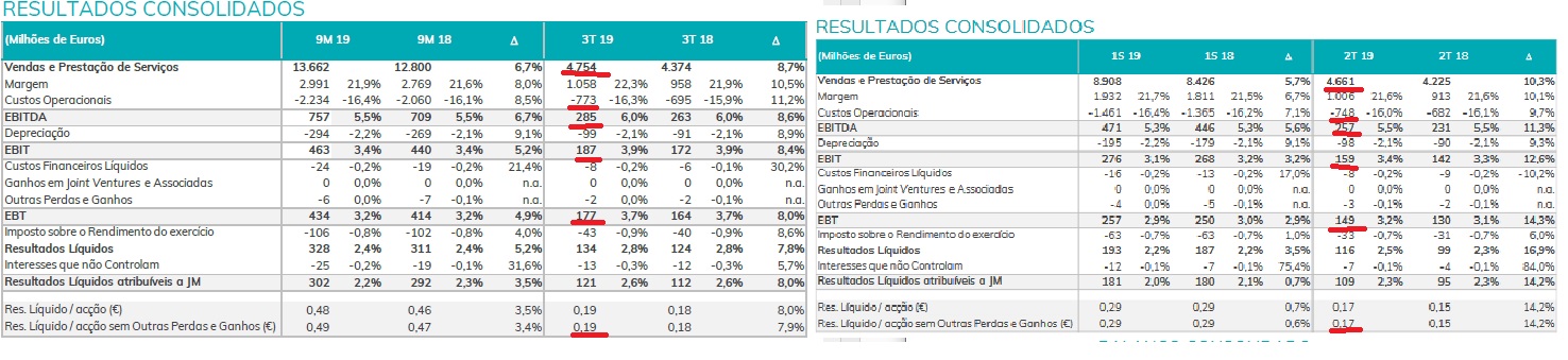 Deixo aqui um pequeno video sobre a analise que fiz a jeronimo martins, mas no fundo houve uma melhoria nas vendas, mas a minha surpresa foram as vendas no recheiro que aumentaram de uma forma significatica.