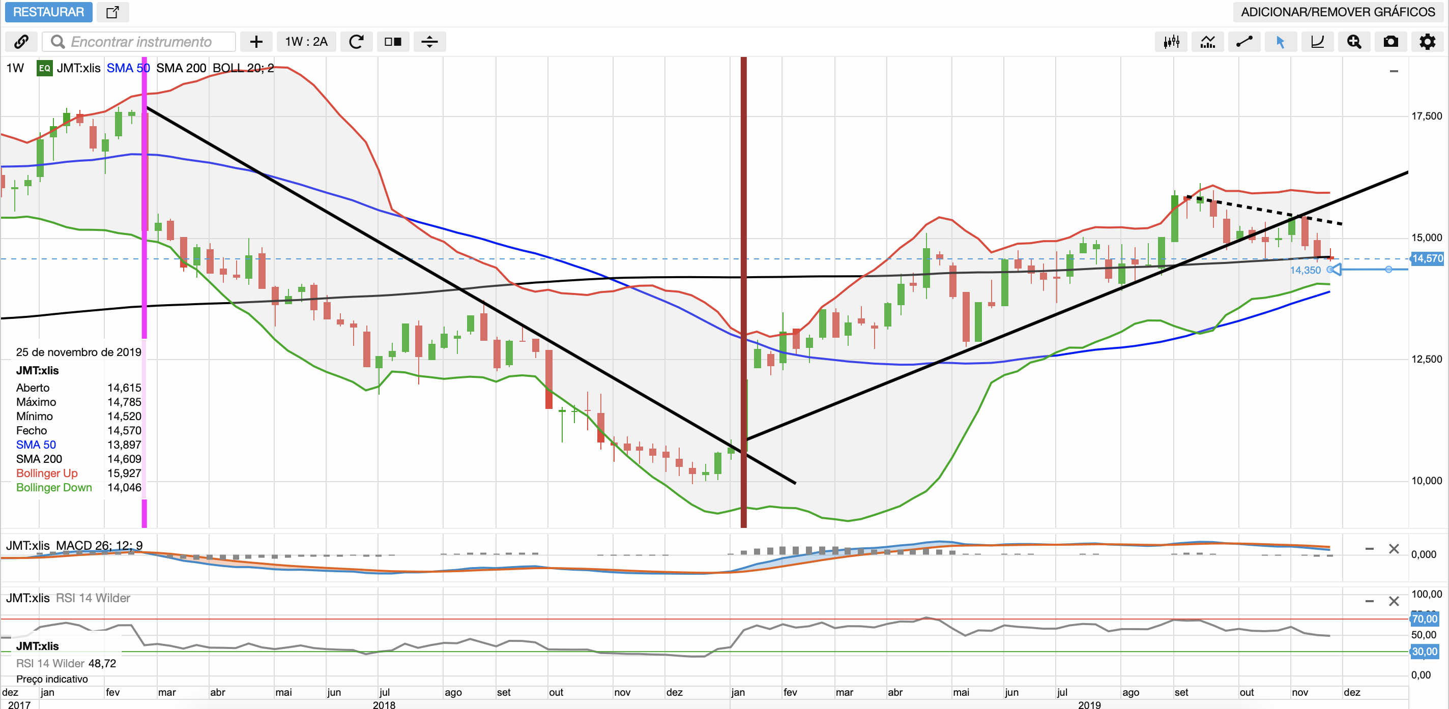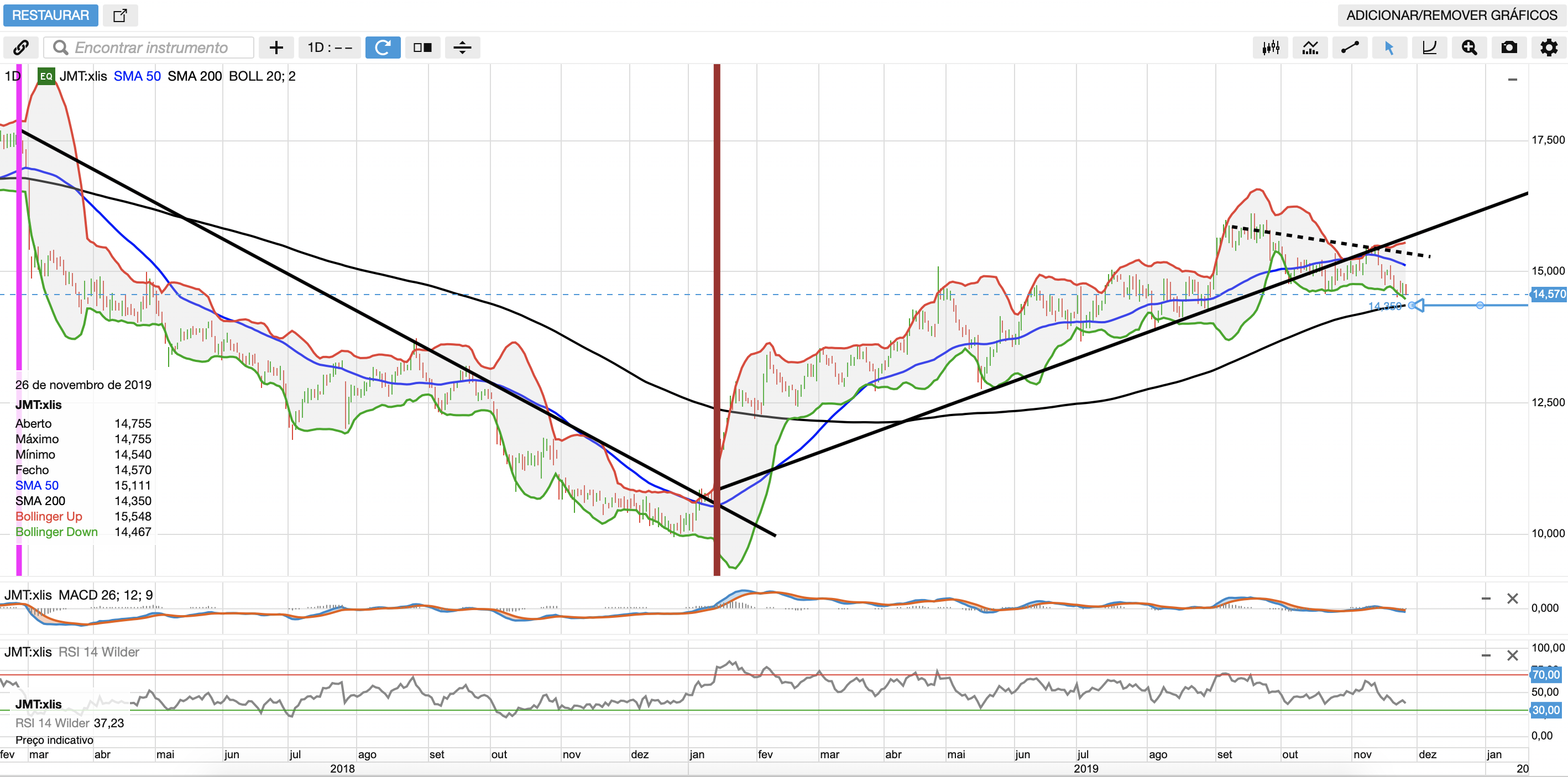 Falo mesmo de 2018 , embora 2014 também não seja muito diferente ! Nesta menina com forte exposição de INVESTIDORES INSTIUCIONAIS E INTERNACIONAIS, quando as linhas partem é um problema………….! E quando os topos tendem a não partir também é um problema !