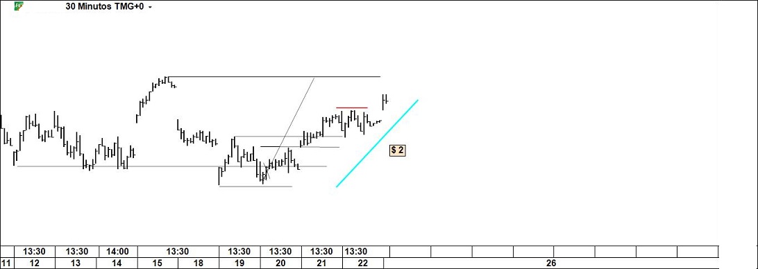 Quebrado o último swing high, subir-se-á a stop profit em medida consentânea com o perfil de risco associado ao negócio.
