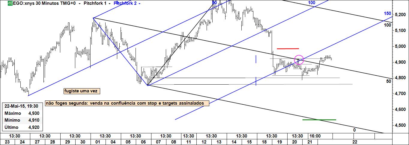 Neste momento está cumprido o r: 1/3. Se o target for atingido, teremos um r:r 1/5. O plano é encerrar a posição no target e não antes