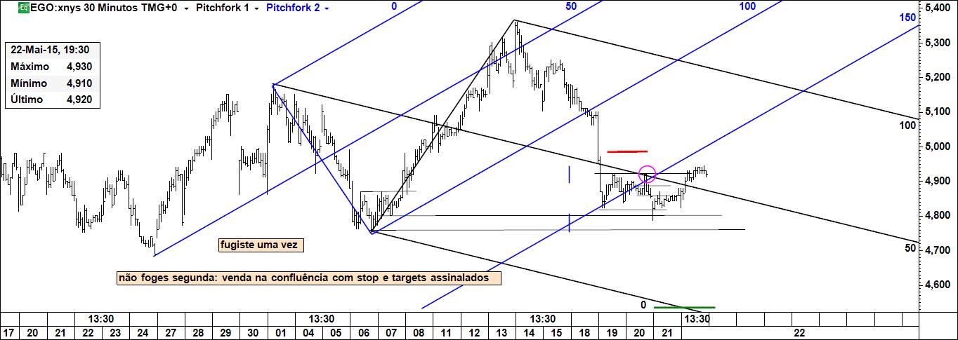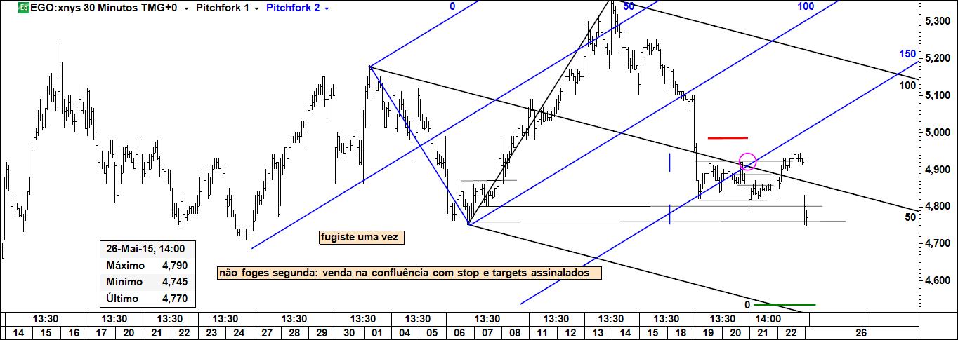 Não fiquei convencido. Fugiste a primeira vez, vou tentar apanhar-te numa próxima oportunidade. Os gráficos que seguem mostram o desenvolvimento dos acontecimentos. Agora é só fazer a gestão do risco e esperar que o preço se digne visitar a linha. E com este negócio se encerra a presente semana especulativa.