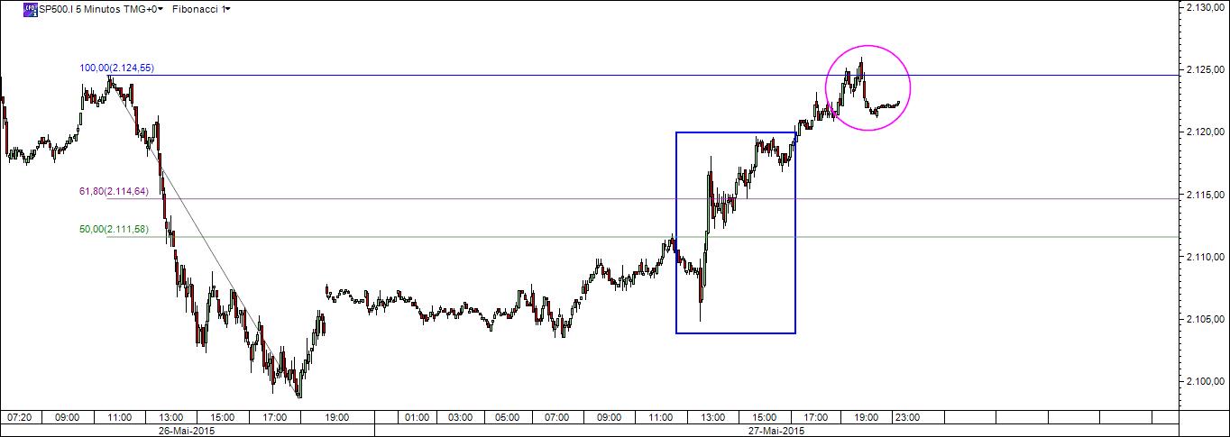 E conseguiu reverter todo o movimento. Está visto que o sp500 é um mercado que pode ser lido recorrendo à fibo. Saltarão agora para o meio da arena os traders do duplo topo?