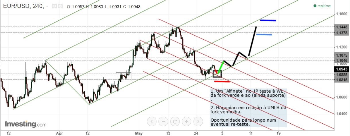 a velha fork ascendente no eur/usd 4h mantém-se, por enquanto, e até ver, em actividade, desta vez fazendo uso da sua 1ª WL.