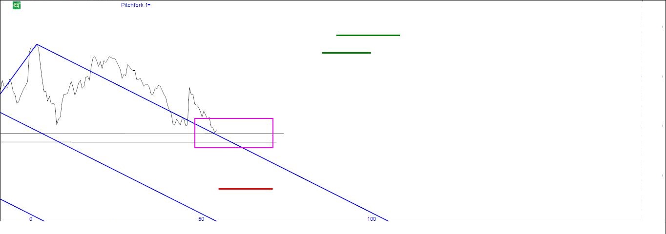 Uma oportunidade especulativa vendedora para a próxima semana/15 dias: as linhas e as zonas falam por si. Dois potenciais locais para colocação da stoploss, tudo dependendo do modo como o preço se comporte, e dois targets. É mister que, chegando a uma das linhas, o preço mostre fraqueza.