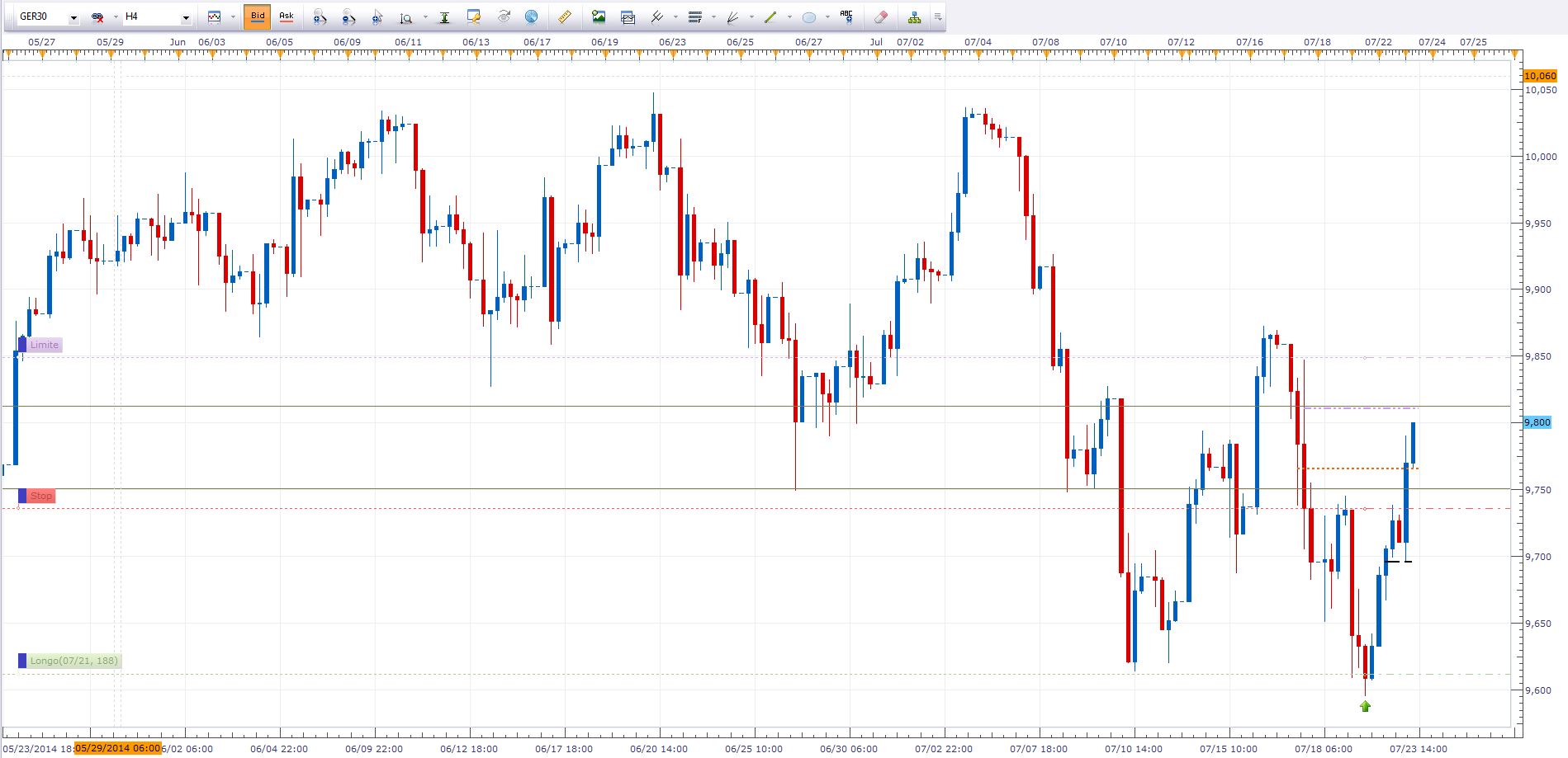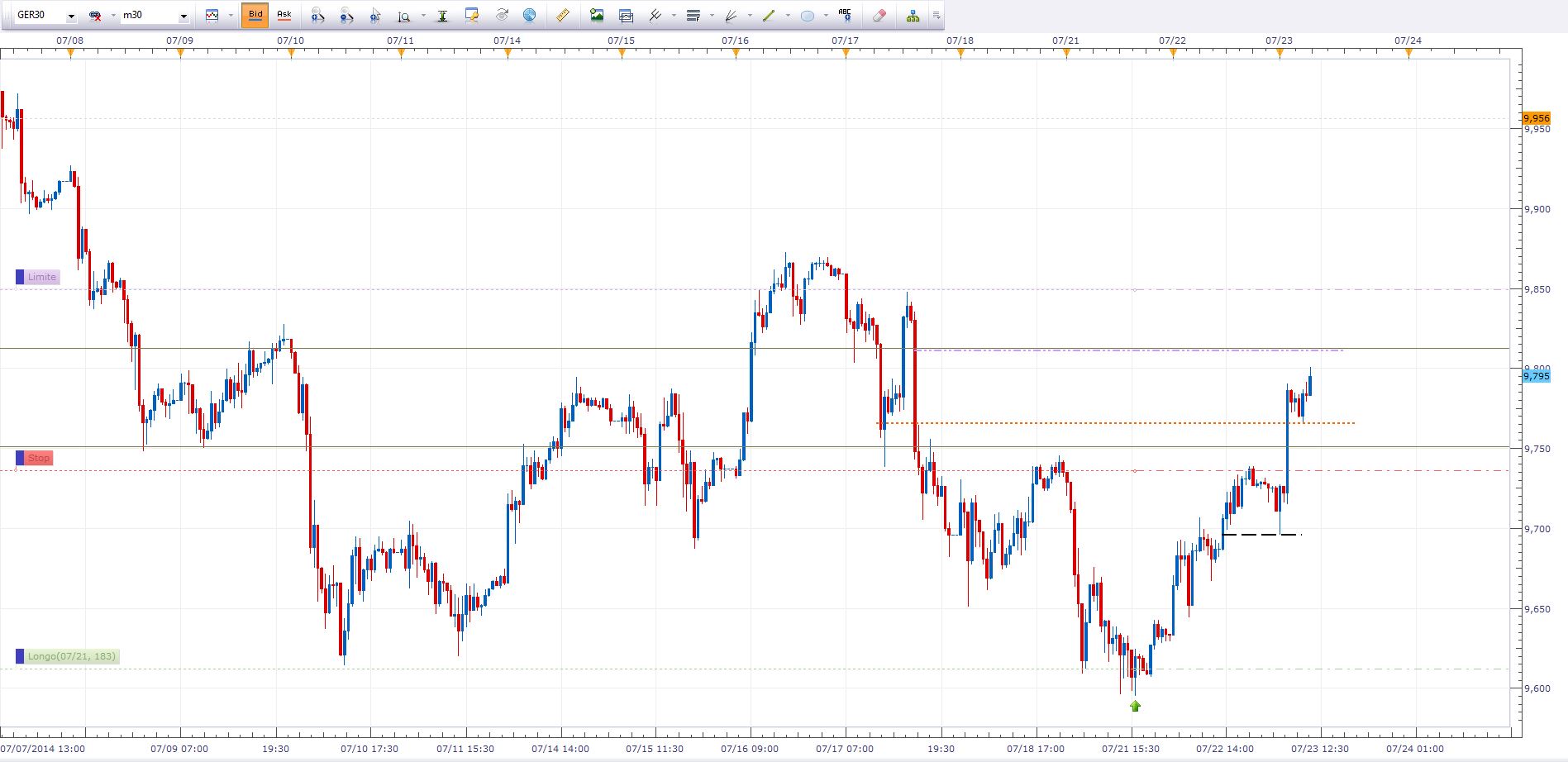 Trade #55 CFD DAX Longo, fechado por activação de Stop loss de protecção de ganhos