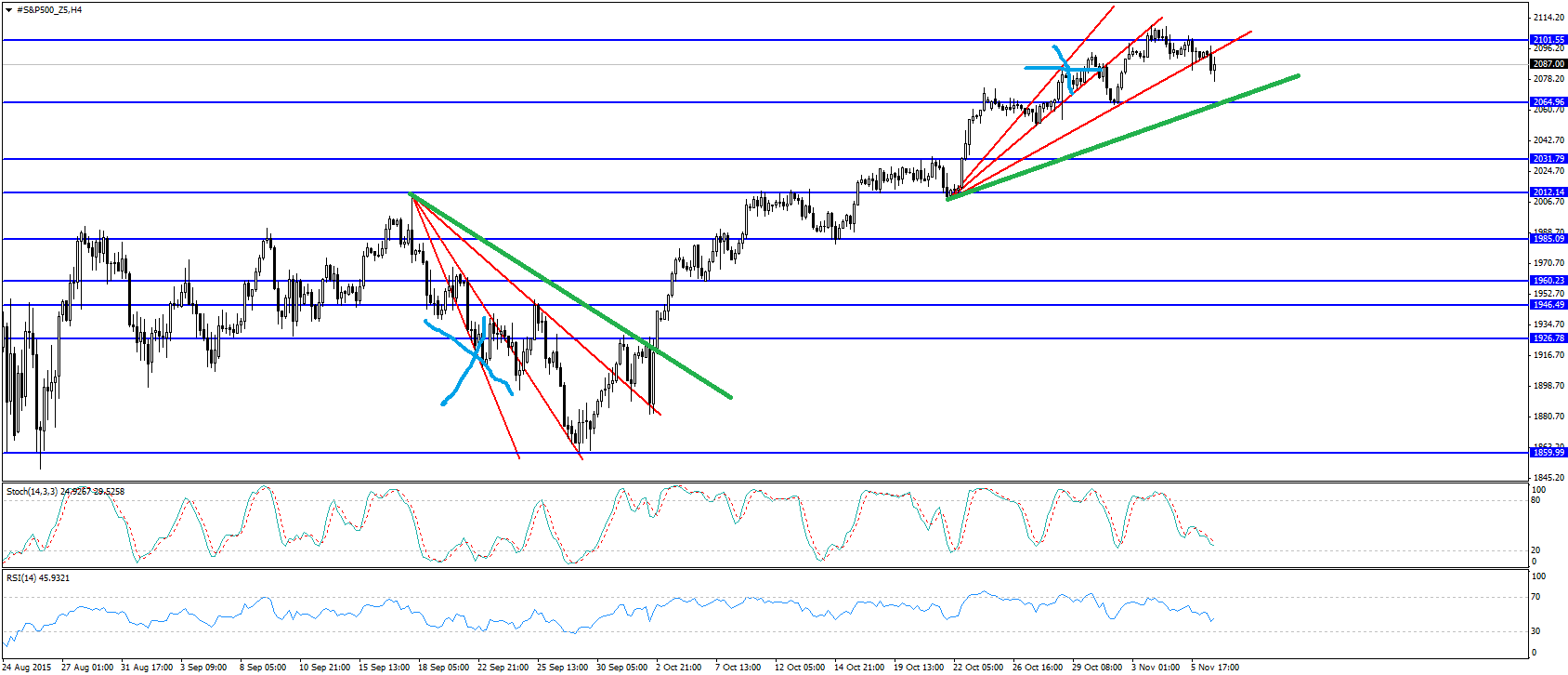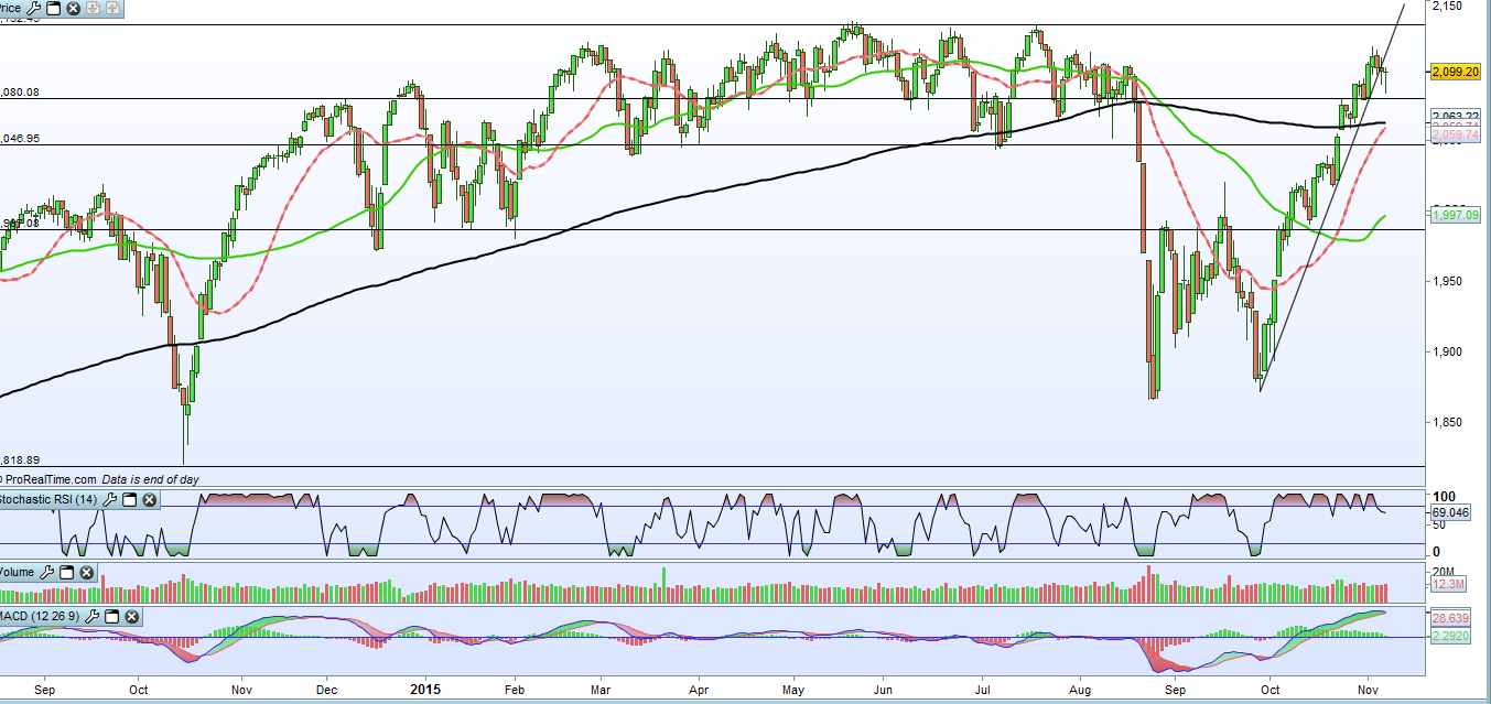 Então, linha ascendente de curto prazo quebrada, rsi desde 2 de Outubro no sobrecomprado, macd a inverter, gap por fechar nos 2050, pouco sentimento bearish...