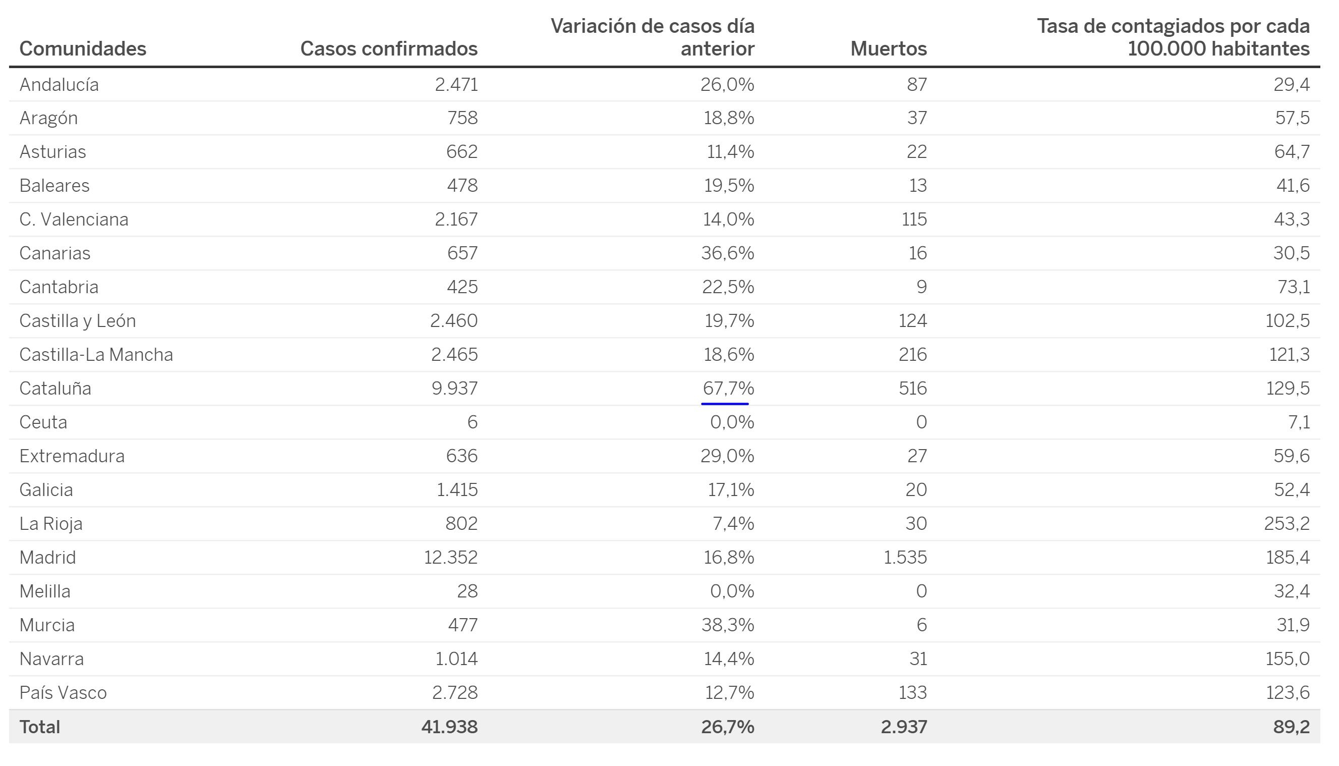 Infelizmente a Catalunha viu a situação agravar-se substancialmente, talvez por aumento do número de testes.