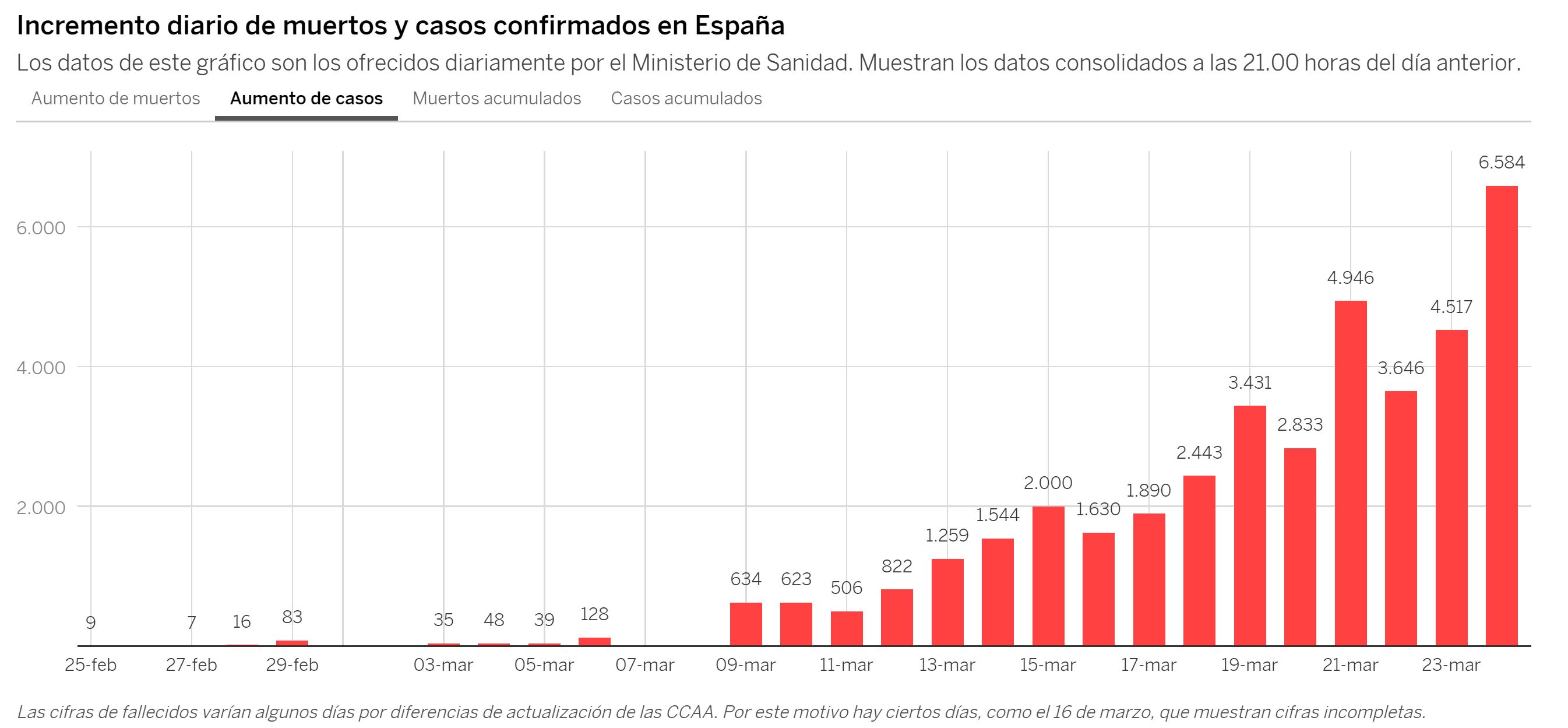 Ainda não há nenhuma indicação que se tenha atingido o topo de novos casos! Esperemos que se produzam resultados durante esta semana, que estamos a chegar ao fim do tempo médio de incubacção e as medidas em Espanha são bastante restrititvas, embora pudessem ser muitissimo mais.