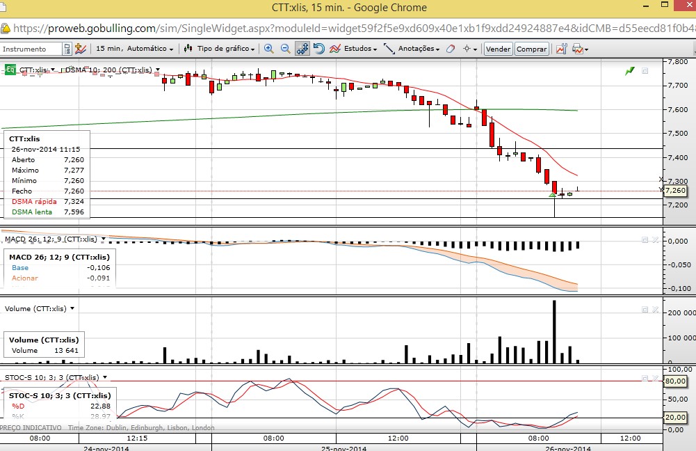 A amplitude da queda, rompendo as MM20,50 e 200 fez-me pensar que se tratava de uma venda de uma posição importante (talvez um fundo com melhores expectativas noutro papel) e que depois de limpa, voltaria à estabilidade que é típica deste título. O facto de ser um dia normal nas restantes cotadas fez-me aperceber deste facto.