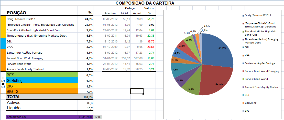 Actualização da Folha de Cálculo e Evolução da Carteira: