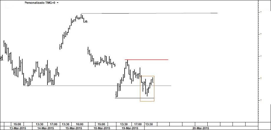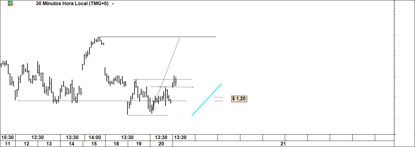 Neste momento está cumprido o r: 1/3. Se o target for atingido, teremos um r:r 1/5. O plano é encerrar a posição no target e não antes.
