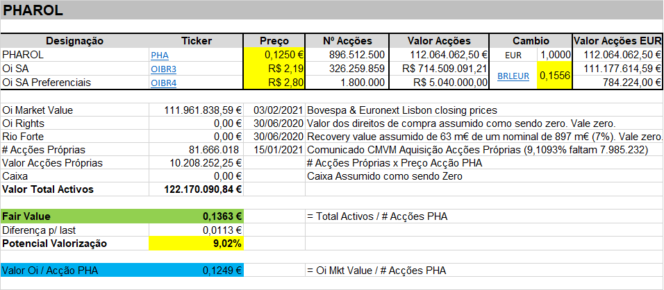 Do "outro lado do rio", a Oi, o maior activo da PHA, emitiu um "Fato Relevante" que, de facto, revela muito pouco quanto ao futuro. Ficámos a saber pouco mais do que já se sabia: que um consórcio financiado pela BTG Pactual entregou uma proposta pelos 51% da InfraCo e agora assinou um "acordo de exclusividade" (o que quer que isso seja) para negociar com a Oi o direito de cobrir qualquer proposta que surja entretanto.